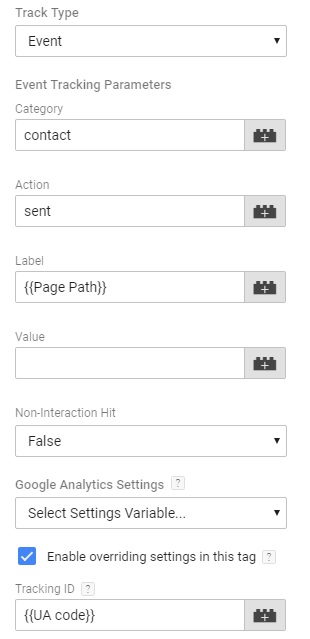 בוחרים שם לקטגוריה ולפעולה, ואם הטופס נמצא בצורה רוחבית בכל עמודי האתר – מומלץ להוסיף בלייבל משתנה מסוג page path, כדי שנוכל לדעת באיזה עמוד נשלח הטופס. אם הטופס נמצא רק בעמוד אחד, אין בכך צורך.