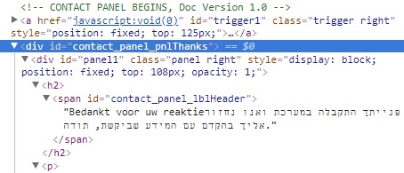 טופס צור קשר מסוג אג'קס, לעומת זאת, דורש שיטת פעולה שונה. מכיוון שהטופס לא שולח אותנו לדף תודה, ולמעשה משאיר אותנו באותו עמוד בדיוק – נצטרך למצוא סמן ייחודי אחר, שמורה לנו מתי הטופס נשלח.