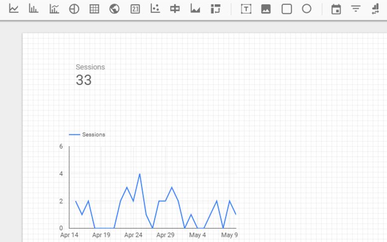בדוגמה זו בחרתי להציג את כמות הכניסות הן כנתון מספרי (33 בחלק העליון) והן כנתון גרפי. כל אחד מהאלמנטים הללו ניתן לגרירה ולהצבה היכן שנרצה, כך שנוכל לסדר את הדוח שיהיה נעים מבחינה ויזואלית.