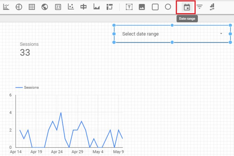 לאחר שהוספנו את התאריכון לדוח, נקליק עליו ובצד ימין נקבל אפשרות לבחור את טווח התאריכים הרצוי לנו (Select date range). ניתן לבחור טווחי זמן קבועים (7 ימים אחרונים, חודש אחרון, שנה אחרונה) או לבחור בצורה ידנית מתוך לוח השנה.
