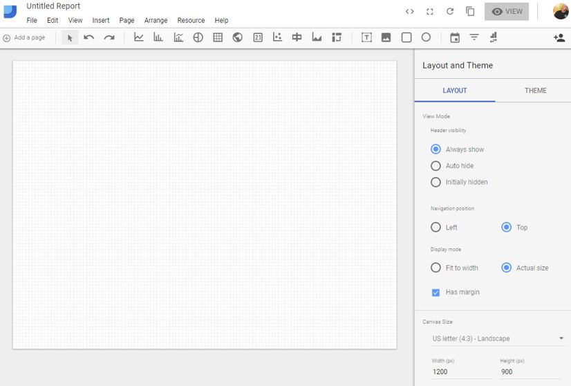 לאחר שסיימנו נוחזר אוטומטית לדוח הריק, אבל הפעם יופיעו 2 תפריטי ניווט חדשים: התפריט האופקי מאפשר להוסיף רכיבים לדוח, והתפריט האנכי בצד ימין מאפשר להתאים כל רכיב בהתאם לצרכים שלנו.