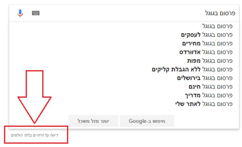 ניתן לדווח על כך באמצעות הקישור הקטן בפינתה התחתונה של תיבת ההשלמות:
