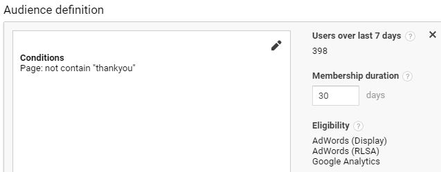 באותו האופן נוכל לקבוע סוגים רבים של קהלים על בסיס זמן שהייה, לתת לכל אחד מסר שיווקי שונה או להחריג אותו מהרשימה. כמו כן ניתן לשלב מספר פרמטרים יחד להגדלת היעילות – מי ששהה בעמוד מוצר במשך 60 שניות אבל לא רכש בסופו של דבר, כנראה צריך תמריצים נוספים.