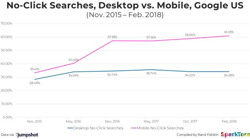 מחקר קליקים שבוצע על ידי חברת Jumpshot בעשרות מיליוני חיפושים בגוגל, מגלה ממצאים חדשים ומעניינים בין 2015 ל- 2018.