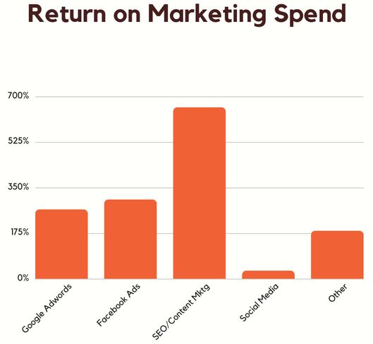 רוב החברות בסקר העידו שהן מוציאות הכי הרבה כסף על פרסום בגוגל; לאחר מכן על פרסום בפייסבוק, ולבסוף – בהפרש ניכר – גם על קידום אורגני, שיווק תוכן, מדיה חברתית וכן ערוצים נוספים (שתויגו "אחר" בסקר). אבל להוציא הכי הרבה כסף על אפיק פרסום מסוים, אין משמעו שאותו ערוץ הוא היעיל ביותר.